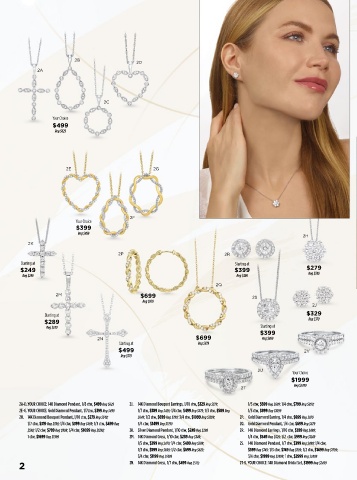 2 2N. 14K Diamond Cross, 1/7 ctw, $499 Reg $579; 2T-V. YOUR CHOICE: 14K Diamond Bridal Set, $1999 Reg $2499